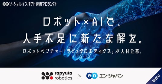 エン・ジャパン株式会社(本社:東京都新宿区、代表取締役社長:鈴木孝二)は、2024年10月24日(木)より、ラピュタロボティクス株式会社(本社:東京都江東区、代表取締役 CEO:モーハナラージャー・ガジャン)の『ソーシャルインパクト採用プロジェクト』(https://www.enjapan.com/)を開始しました。当社が運営する採用支援サービスを通じ、「セールス」「マーケティング」「プロジェクトマネージャー」など全10職種以上を公募します。下記、本プロジェクト概要と、同社のコメントを紹介します。