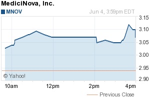 Dow、Nasdaqが下げている中、MNOVメディシノバ・インクは、特に大きな乱れもなく+引けで、堅調でした。