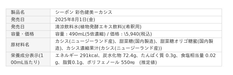 独自のビューティ・プログラム「ホームケア+サロンケア」を展開する株式会社シーボン(本社:東京都港区、代表取締役社長:崎山一弘、証券コード:4926)は、 「果実と発酵のチカラ」で身体の内側からビューティサポートする発酵飲料「シーボン 彩色健美-カシス」を2025年8月1日(金)に発売いたします。本製品はインナービューティに特化した発酵ドリンクです。
