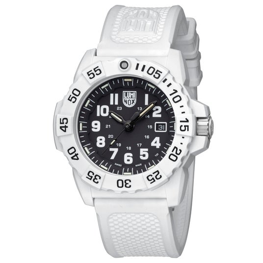 ルミノックスの人気シリーズから最新作登場!雪山でのカモフラージュが印象的なホワイトケース×ブラック文字盤高い軽量性と耐久性で実用性抜群。