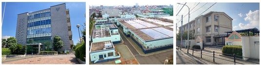 新たに供給を開始する施設 (左から上下水道局本庁舎本館、三宝水再生センター、市立小学校)