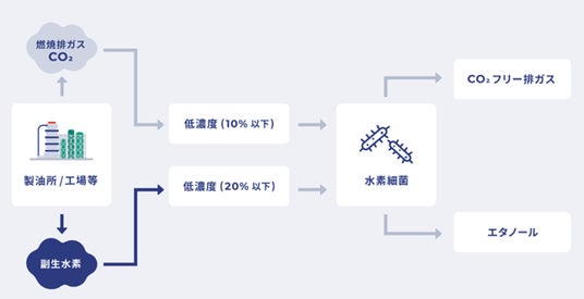 本共同検討では、不純物を含んだCO2や水素を直接利用する技術開発により製造コストの低減を図ることで、経済性の高いエタノールの製造・供給が期待できます。