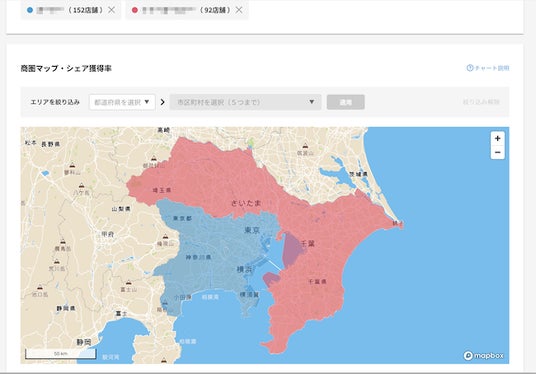 - エリアを指定し、そのエリアのお客様がどの店舗を主に利用にしているかという観点で商圏理解や出店後の成否をわかりやすく把握したい(流通企業様)