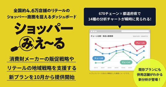 リアル行動データプラットフォーム「Beacon Bank」を運営する株式会社unerry(本社:東京都港区、代表取締役社長CEO:内山 英俊、以下、unerry)は、全国リテールのショッパー・商圏を瞬時に捉えるダッシュボード「ショッパーみえーる powered by Beacon Bank」において、新プランを10月1日より提供開始いたします。また併せて、これまで提供していた店舗分析においても、新たな分析機能を追加いたします。