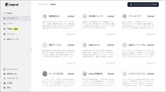 「imprai」では下記に加え100以上のAIアシスタントを順次ご用意する計画です。