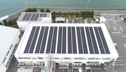 納入した太陽光発電システムの発電容量は約194kW、年間想定発電量は約20万kWhとなり、発電した電力は南海プライウッド 志度工場において自家消費され、同工場の年間電力需要量の約5.1%を賄う予定です。また、年間想定発電量におけるCO2排出削減量は年間約88t-CO2※となる見込みです。