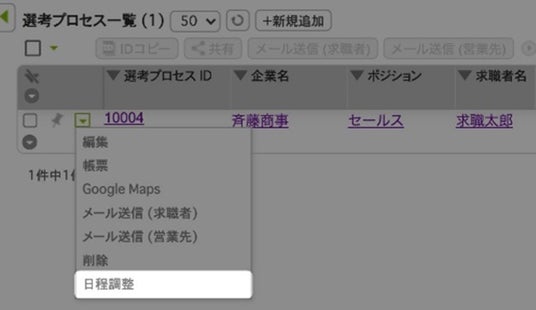 1. 『PORTERS』選考プロセスアクションメニューから日程調整を選ぶ