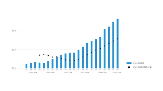株式会社Rebase2025年3月期第2四半期決算説明資料より ビジネス利用数、ビジネス利用の割合(図)