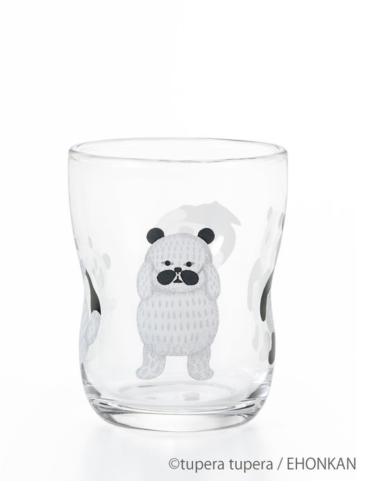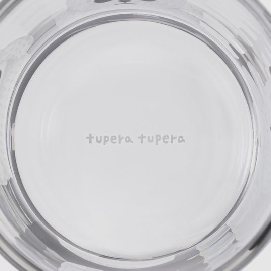 口部の割れ・欠けに強い口部強化加工で安心。グラス底面には“tupera tupera”のロゴ入り