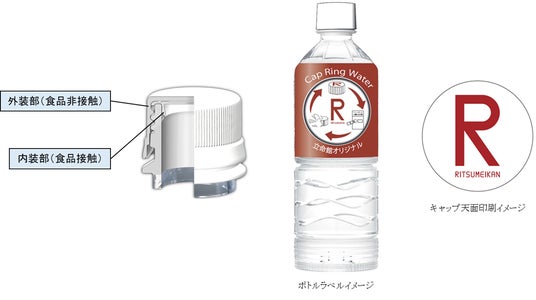 当該製品で使用するキャップは、立命館大学キャンパス内で回収されたキャップを当社にてメカニカルリサイクルした材料と、当社プラントから排出されたキャップを株式会社プライムポリマーがリペレット化した「Re’PRM」を、当社オリジナルキャップ「TEN-CAP」の外装部にリサイクル素材として10%混合しています。また、この水平リサイクルされたキャップはダイドー・タケナカ社にて充填している清涼飲料に使用され、立命館大学のキャンパス内にある立命館生活協同組合にて4月1日より発売されます。