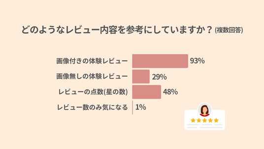 5.参考にしているレビューは「画像付きの体験レビュー」が93%と最も多い結果となった。
