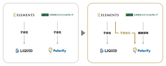 生体認証や画像認識サービスを展開する株式会社ELEMENTS(本社:東京都中央区、代表取締役社長:長谷川 敬起、以下「ELEMENTS」)は、2025年1月14日開催の取締役会において、株式会社三井住友フィナンシャルグループ(本社:東京都千代田区、執行役社長グループ CEO:中島 達、以下「SMBCグループ」)の株式会社ポラリファイ(本社:東京都港区、代表取締役:和田 友宏、以下「ポラリファイ」)の株式を取得し、連結子会社化することについて決議したことをお知らせします。SMBCグループは、引き続きポラリファイ株を保有します。