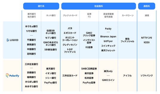 (「LIQUID eKYC」と「Polarify eKYC」の契約事業者(一部)について)