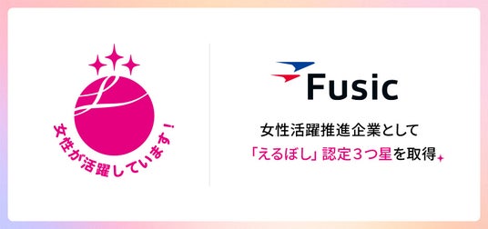 株式会社Fusic(本社:福岡県福岡市、代表取締役社長:納富 貞嘉)は、厚生労働省による女性の活躍推進に取り組む企業を認定する「えるぼし」認定で3つ星を取得いたしました。