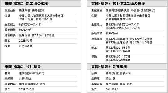 中国大陸における衛生陶器の新生産体制、本格スタート|2021年8月稼働の東陶(福建)第2工場を含め、最新設備を備えた2拠点体制で需要に対応