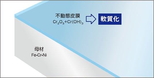 独自の表面処理技術によって、不動態皮膜を軟質化。