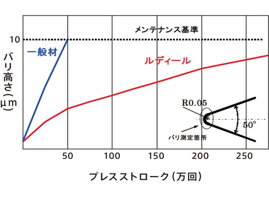 ※ 基材:SUS304, 1/2H, 0.1mm クリアランス:5μm ストローク:600spm