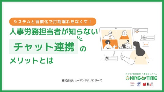 株式会社ヒューマンテクノロジーズ(本社:東京都港区、代表取締役社長:家崎 晃一)は、多くの企業が課題とする「打刻漏れ」の解決策を提案するホワイトペーパー「システムと習慣化で打刻漏れをなくす!人事労務担当者が知らないチャット連携のメリットとは」を公開いたしました。本資料では、打刻漏れが発生する原因の分析から、多様な働き方に対応した具体的な防止策まで、人事労務担当者が知っておくべき情報を解説しています。また、チャットツールの利便性に関する独自の意識・実態調査結果も併せて公開し、現代の働き方に合わせた勤怠管理のあり方を提案しています。