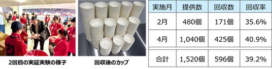 この結果を受け、2025年4月5日~6日に行われたアルバルク東京対千葉ジェッツ戦では、同じく代々木第一体育館にてFFカップの提供数を1,040個に、回収場所も1か所から3か所に増やして検証を行いました。結果、425個のカップが回収され40.9%の回収率となりました。