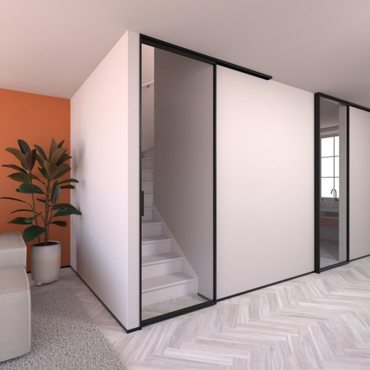 クリアガラス仕様により、更に光を通しながら空間を仕切ることが可能に。どんなインテリアにも自然に馴染みます。