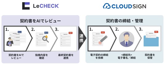 弁護士ドットコム株式会社(東京都港区、代表取締役社長 兼 CEO:元榮 太一郎、以下当社)が提供する契約マネジメントプラットフォーム「クラウドサイン(R)︎」は、株式会社リセ(東京都千代田区、代表取締役社長、弁護士(日本・米国NY州):藤田 美樹、以下「リセ」)が提供する契約書レビュー支援AIクラウド「LeCHECK(リチェック)」との、サービス連携を2024年9月27日(金)より開始することをお知らせします。