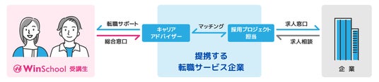 この提携により、「Winスクール」で高度な専門スキルを習得した受講生は、株式会社シオンのキャリアアドバイザーによる、転職から入社までの包括的なサポートを受けることが可能となります。