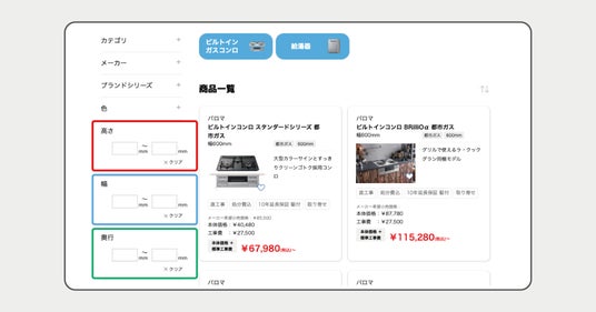 「高さ」「幅」「奥行」を掛け合わせた絞り込み検索の実装で利便性向上