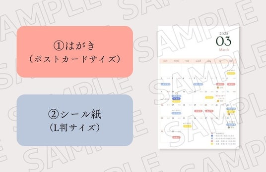 商品パターン:はがき(ポストカードサイズ)、シール紙(L判サイズ)各1種