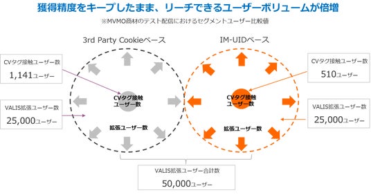 検証事例を踏まえ、機能アップデートにより、Safariブラウザ面に対する「VALIS拡張」を用いた広告配信においても3rd Party Cookieと遜色無い広告効果をキープしたうえ、“コンバージョンする確率が高い新規ユーザー”へのリーチ拡大ができたことを確認できる結果であると捉えております。