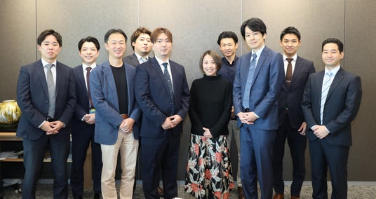 株式会社PeopleX CEO 橘大地氏(中央左)、アクティブ・コネクター株式会社 代表取締役 松本麻美氏(中央右)、ストライク代表取締役社長 荒井邦彦(左から3番目 )