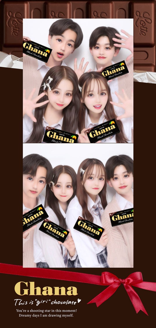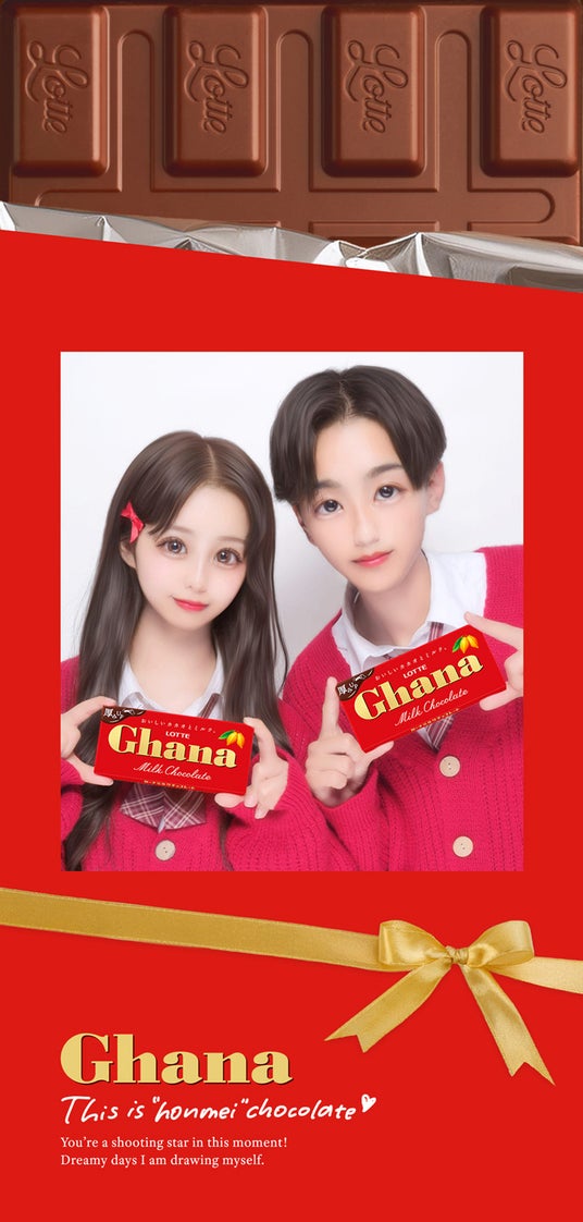 なお、フリューとロッテ「ガーナ」のバレンタイン企画「バレンタインのせいにして。」のコラボレーションは今回で2回目。昨年のコラボレーションでは、“絶対撮りたい!”、“シールデザインかわいすぎ”など多くの反響をいただきました。今年は高校生活の思い出をプリで残したくなる特別な撮影体験を提供するフリューのプロモーション企画「イベントプリリレー」の第4弾としても実施。昨年よりパワーアップした内容で、バレンタインシーズンならではの特別なコラボレーションをお届けします。