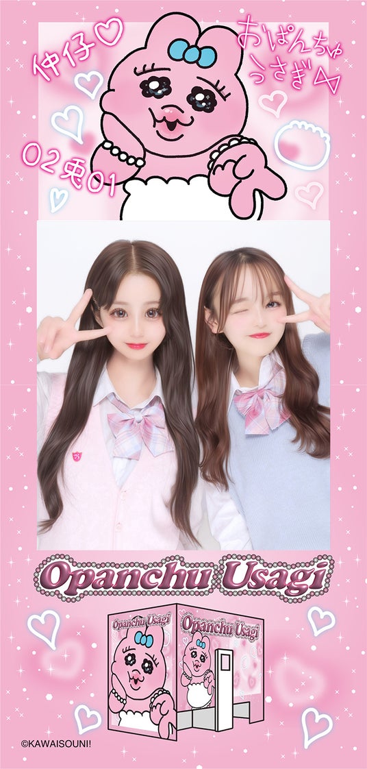 本コラボ最大の目玉は、初公開となる描き下ろしの“プリ盛れおぱんちゅ”です。キラキラとしたデカ目にツヤ感のあるリップでギャルピースポーズを決める、盛れた「おぱんちゅうさぎ」を表現。さらに、仲仔、02兎01(ニコイチ風のニトイチ)といった落書き風デザインを施し、プリっぽさを感じるデザインに仕上げました。