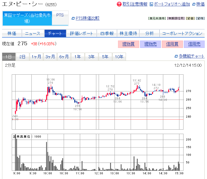 NPC、久しぶりに見たらありえないぐらいひどい事になってるな。去年の1/5じゃん(汗)。この株価、分割したわけじゃないよね?(苦笑)。 去年から何度も何度も株主を奈落に突き落とす下方修正をして、極めつけはMSCB. 去年の夏、それまで少し儲かっていたのいい事に、これからは太陽光だって口車に乗せられてさ... 自分のそれまでのスタイルを無視して、意地になってナンピンを繰り返した結果、泣く泣く最後には... ...続きを読む