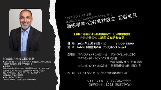 本日(2024/11/14)当社取締役会において、米国Linus Biotechnology, Inc.(以下ライナスバイオ社)と当社100%子会社のワイエイシイバイオ株式会社(以下、バイオ社)との共同出資出資(バイオ社:51%、ライナスバイオ社:49%)による新会社の設立を決定しました。