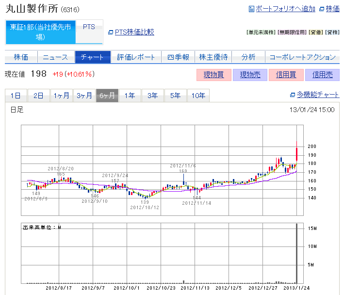 133円高ですか。めちゃくちゃです。また材料はないけど円安で反発ですね。ま、いいか。今日は、丸山製作所を売ったり買ったりしてました。最初、普通に買ったらマイナスになって、こんちくしょうということで、空売りしたら儲かりました。それより... ...続きを読む