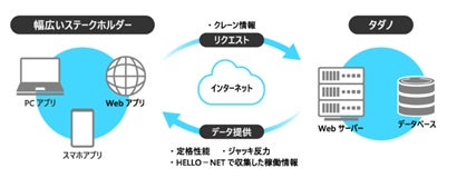 デバイスやアプリケーションの違いによらず、クレーンの性能演算機能やテレマティクスデータを、インターネットを介して提供する仕組みです。Autodesk(R) Revit(R) のアドインソフトウェアと連携する様子をご覧いただけます。