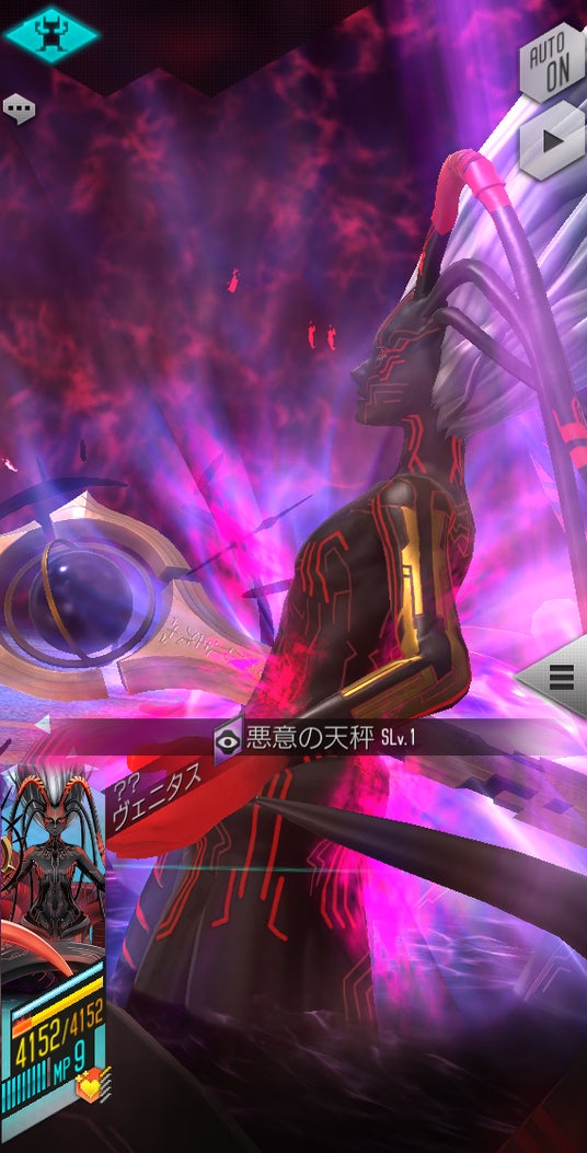敵ターン開始時、連動効果が発動「自身に悪意を1カウント与え、HPを100%回復して、MPを4回復する。(バトル中3回まで)」