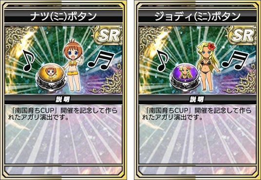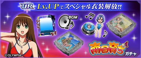 進化型SPキャラ(UR)「まどか」「ナツ」「いずみ」や、SPキャラ「レイコ ミニ/南国育ち」「ジョディ ミニ/南国育ち」「しゅり ミニ/南国育ち」といった『南国育ちシリーズ』に登場するキャラクターをはじめ、『南国育ち』をイメージしたアガリ演出、卓背景、EX枠、EX背景、BGMなどのコラボアイテム全50種が期間限定で登場します。