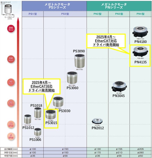 本製品は、メガトルクモータ11製品に対応する機種をラインアップすることで、半導体製造装置をはじめとして、電子部品検査装置や画像処理装置など、幅広い用途の装置にご利用いただけます。また、既にメガトルクモータをご採用いただいている設備であっても、本製品を導入いただくことでEtherCAT対応を実現できます。