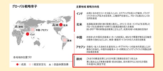 ジェイテクトは、2024年度から2026年度の第二期中期経営計画において、グローバル体制の再構築による経営・事業体制の強化を進めています。欧州市場においては事業の整理・統合を進め、収益体質の改善により、黒字化を目指しています。