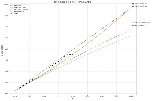 ※世界の総人口の今後の予測を、複数の数式で計算し比較させた結果
