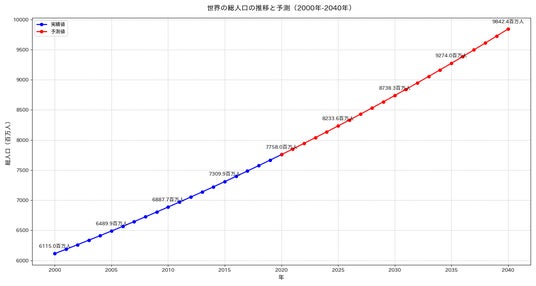 ※世界の総人口の、これまでの推移と今後の予測をグラフ化させた結果