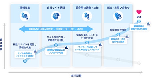 ※1:アカウントインテリジェンスツールとはターゲット企業や担当者のニーズや購買意図をデータ解析で可視化し、マーケティングおよび営業活動の精度と効果を向上させるツールです。