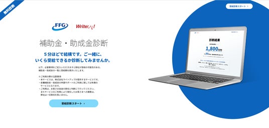 最新の補助金・助成金を各企業ごとに自動診断できるシステムをご提供いたします。インターネット上で、各企業ごとに受給可能性が高い補助金・助成金を、無料で、数分で調べることが可能となります。