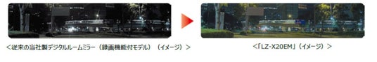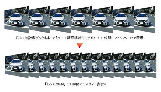 そこで当社はこのたび、液晶ルームミラーモニターによる後方視認性に特化した、当社初となるデジタルルームミラーのラインアップとして、10V型高画質液晶を搭載した「LZ-X20EM」を市場投入します。本機は、当社がこれまでデジタルルームミラー型ドライブレコーダー“ミラレコ”の開発で培った映像技術を生かしつつ、さらなる高画質技術を搭載。ハイフレームレート59fpsによる映像表示に対応することで、鮮明で滑らかな高精細映像を実現しました。また、明るく低ノイズで色再現性に優れるCMOSセンサー「PureCel(R) Plus-S」を新採用し、昼夜問わず、よりクリアな映像の再現が可能です。さらに“ミラレコ”で好評を得ている、当社独自の映像技術と車載技術でチューニングした「Hi-CLEAR TUNE」(ハイクリアチューン)により、総合的に画質を向上させ、自然でクリアな映像表示を実現します。