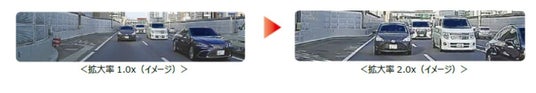 ルームミラーモニターに表示するリアカメラの映像を最大2倍まで、6段階で拡大できる「表示画角調整機能」※1を搭載。広角レンズによる遠近感の違和感を調整することができ、後続車との距離感をつかみやすくすることが可能です。