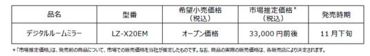 株式会社JVCケンウッドは、KENWOODブランドより、液晶ルームミラーモニターによる後方視認性に特化した商品として、当社初のデジタルルームミラー「LZ-X20EM」を11月下旬より発売します。