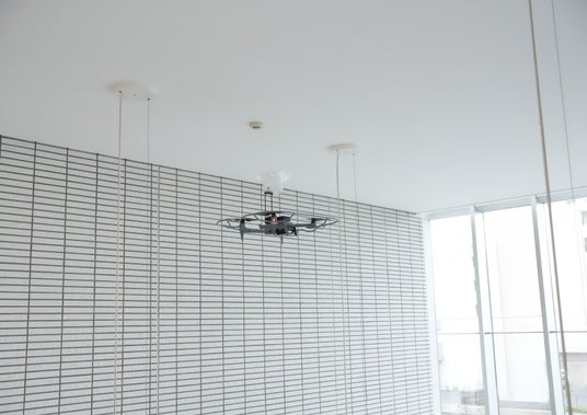 従来、高所の煙感知器の点検では、非常に長い点検用支持棒に装着した加煙試験器を2人がかりで保持・操作をしたり、点検用支持棒でも届かない場所では高所作業用の足場を用意したり、床面にある障害物によって煙感知器の直下にアクセスできずに無理な姿勢で行う、などの点検作業に伴う危険性がありました。ドローンに搭載した加煙試験器を使用することで、これらの問題点を解消し作業の効率化を図ることができます。これにより煙感知器の点検に係る時間短縮とコスト削減を実現し、建物に設置された自動火災報知設備の機能維持にも大きく貢献します。