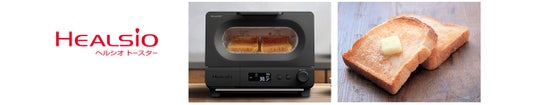 左から、ウォーターオーブントースター「ヘルシオ トースター」<AX-WT1-B>、トーストの焼き上がりイメージ