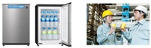 左:「アイススラリー冷蔵庫」<RJ-AS7P>、右:アイススラリー補給シーン(イメージ)